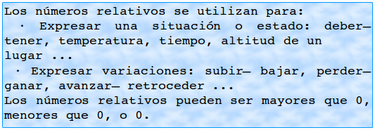 El cero es un número relativo pero no es ni negativo ni positivo, éste es un gráfico que representan los números relativos: