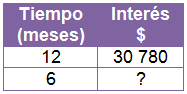 Ahora se calcula el interés que gana el capital de \( $102\ 600\) en un período de seis meses, teniendo en cuenta que en un año (12 meses) gana \( $30\ 780\).