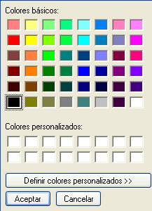 Esta es la tabla de colores disponibles en un principio pero podremos definir el color que queramos:
