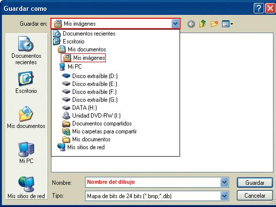 Después de haber dado clic en guardar como se abrirá una ventana en la cual se debe de escoger el lugar donde se va a guardar la imagen que por defecto se guardara en Mis Imágenes y el nombre de la imagen, debajo del nombre se encuentran los formatos de los cuales puedes utilizarlos para guardar la imagen.