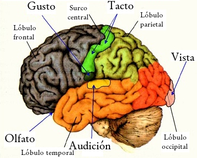 Las distintas impresiones del tacto son transmitidas por los diferentes receptores a través de las vías nerviosas hasta la médula espinal y finalmente llegan a la corteza cerebral, específicamente a la zona ubicada detrás de la cisura de Rolando, donde se hacen conscientes y se interpretan.