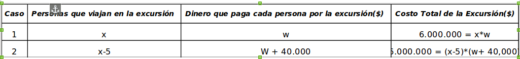 Si llamamos \(x\) al número de personas que asiste y \(w\) al precio que debe pagar cada una por la excursión ,podemos indicar los datos del problema: