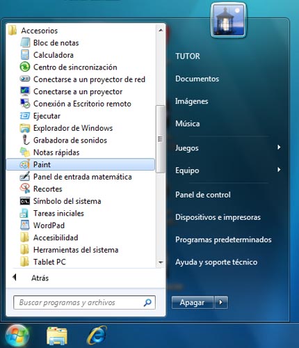 1. Es abrir Paint, nos dirigimos al botón inicio hacemos clic en todos los programas ubicamos la pestaña de accesorios y hacemos clic en Paint.