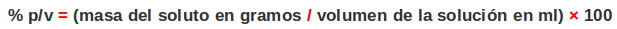 Porcentaje en peso-volumen (%p/v): Se refiere a la masa en gramos de soluto por cada 100 mililitros de volumen de solución.