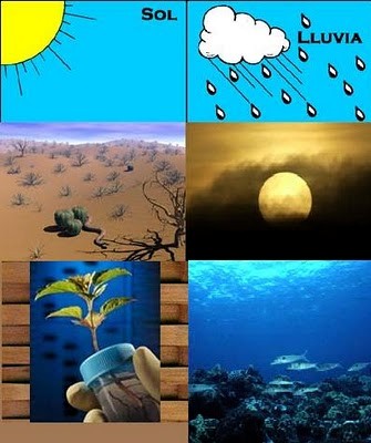 Los factores agua y temperatura tienen una estrecha relación: parte importante de la radiación solar que llega a la Tierra, se disipa en la evaporación del agua. Esta corriente de agua evaporada es la que templará los climas y hará posible el desarrollo de la vida con toda su magnífica diversidad.
