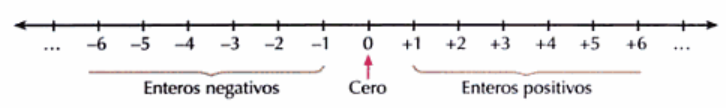 Usualmente los números enteros se representan en una recta horizontal. Sobre ella se escoge un punto para ubicar el cero; se poma una unidad cualquiera, como referencia, y hacia la derecha ubicamos los enteros positivos. Con un proceso análogo, y con la misma unidad ubicamos los enteros negativos.