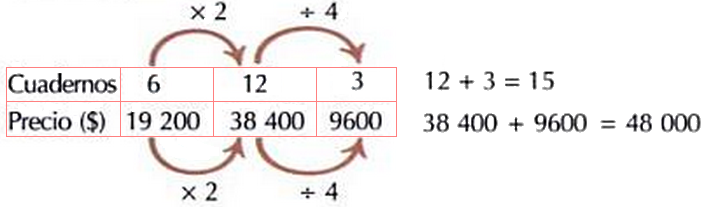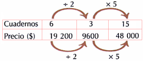 *Carolina resuelve el problema con estos razonamientos: como el número de cuadernos y el valor pagado son directamente proporcionales, al aumentar una de las magnitudes \(n\) veces la otra se hace \(n\) veces mayor.