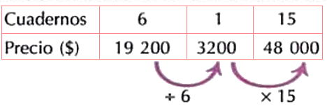Seis cuadernos “\(5\) materias” iguales tienen un precio de \( $19\ 200\). ¿Cuánto cuestan \(15\) de esos mismos cuadernos?