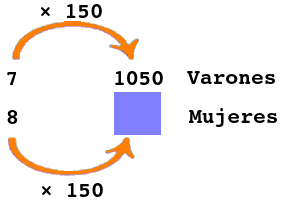 Como \(7 \times 150=1050\), entonces el número de estudiantes mujeres correspondiente a los \(1050\) alumnos varones será \(8 \times 150 = 1\ 200\).