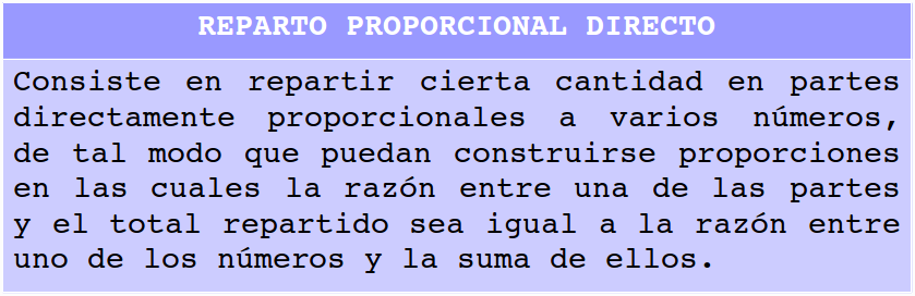 REPARTO PROPORCIONAL DIRECTO: