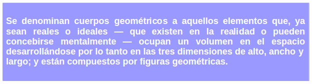 En el siguiente mapa conceptual se observan los diagramas, de acuerdo a la clasificación de los cuerpo geométricos:Áreas y Volúmenes de cuerpos geométricos:Notaciones:\(a\)→ arista\(D\)→ diagonal\(h\)→ altura\(A\)→ área\(V\)→ volumen\(A_B\)→área de la base\(A_L\)→ área lateral\(A_T\)→ área total\(r\)→ radioPREGUNTA: Calcular el perímetro de la base y el volumen en la figura siguiente:Nota: recuerde de la lección 2 anterior el área del cuadrado. Las medidas están dadas en \(cm\).