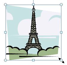 Si por ejemplo quisieramos aumentar su tamaño en todas sus dimensiones, utilizamos los puntos de las esquinas; en este caso queremos incrementar tamaño y nos ubicamos en la esquina inferior derecha, vemos como aparece una flecitas con punta doble.