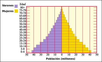 Las pirámides de edad describen los porcentajes de una población en diferentes clases de edad, en un tiempo dado, y sirven para predecir las tendencias de la población a mediano o largo plazo. Una población en expansión rápida comprende una gran proporción de individuos jóvenes, en la base de la píramide; mientras una población estable muestra una distribución más uniforme en las clases de edad. Por su parte, la población en decadencia se caracteriza por una elevada proporción de individuos viejos, en la base de la pirámide. Se considera que las etapas juveniles son pre-reproductivas, las de madurez son reproductivas y las etapas de la vejez son post-reproductivas. Los lapsos de cada etapa, que constituyen el ciclo vital, son específicos para cada población.
