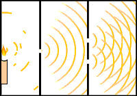 Cuando una onda encuentra un obstáculo pequeño, es capaz de sobrepasarlo; sólo si el obstáculo es muy grande, la onda se devuelve. En cambio con los movimientos que no son ondulatorios, no sucede así. Una bola de pimpón que encuentra un obstáculo bien sea grande o pequeño, siempre desvía su dirección.