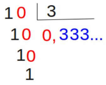 Así el resultado de la división \(\frac{1}{3}= 0.333...\).