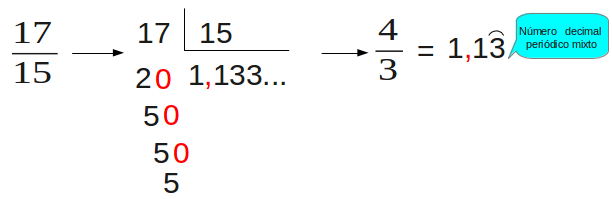 Números decimales periódicos mixto es un número decimal en el cual la cifra o grupos de cifras que se repiten no empieza inmediatamente depués de la coma.