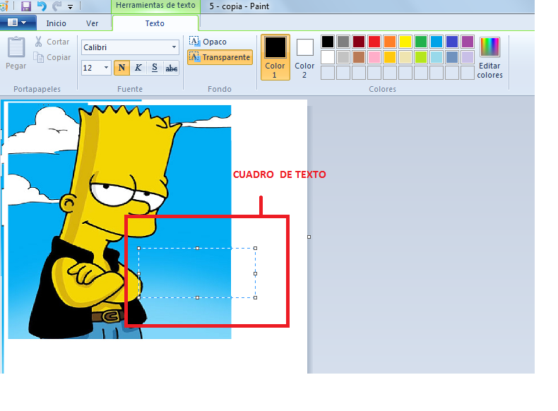 2. Hacemos clic en el botón y aparecerá un cuadro de texto en la imagen.