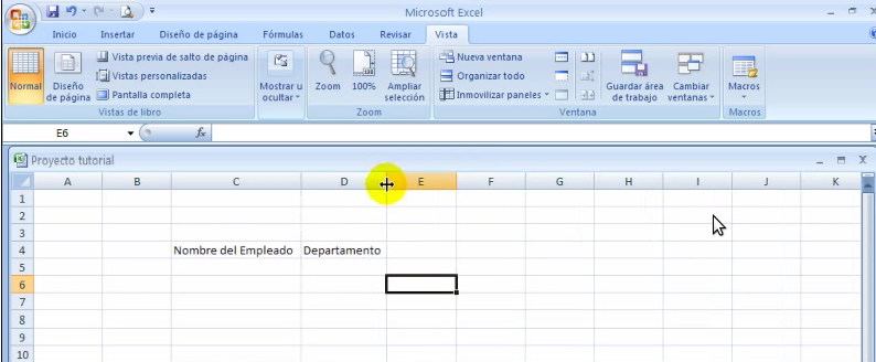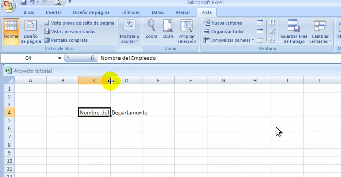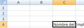 Por ejemplo si queremos escribir en la celda C4, nos posicionamos en ella y escribimos: Nombre del Empleado.