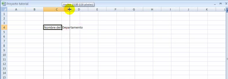 Sin embargo podemos ampliar el tamaño, para ello nos posicionamos en el límite entre las dos columnas C y D.