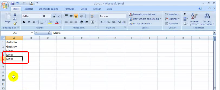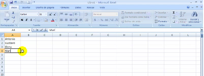 1.Hagámos una lista de nombres cualquiera hacia abajo.