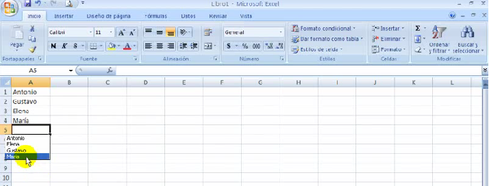 Al crear esta lista de datos Excel, cuando escribimos en una celda una pálabra que tiene las primeras letras iguales a una pálabra de la lista. Automáticamente aparecerá la pálabra ya listada sombreada, para seleccionarla o bien escribir otra nueva.