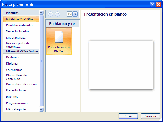 CREAR UNA PRESENTACIÓN NUEVA EN BLANCO