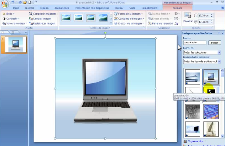 Y la imagen del Computador se visualizara en la diapositiva.