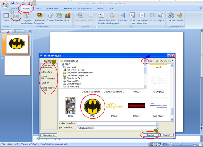 Ahora insertaremos imágenes desde archivos existentes en el ordenador. Para ello realizaremos: