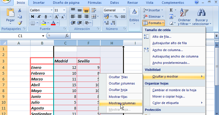 Si deseamos mostrar las columnas ocultas, por ejemplo para cambiar alguna fórmula de cálculo intermedio: