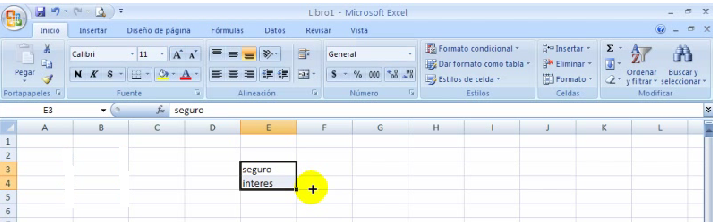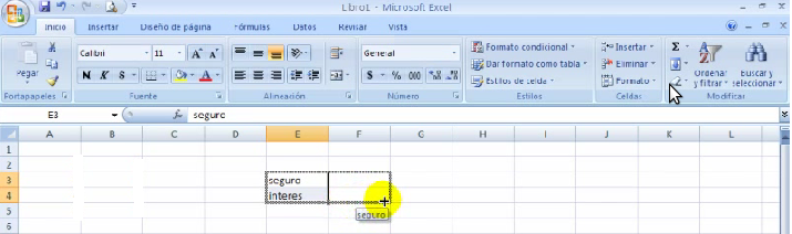 2.Manteniendo el botón izquierdo del ratón apretado, ponemos el curso en la esquina inferior derecha de las dos pálabras y arrastramos el ratón hacia la derecha.