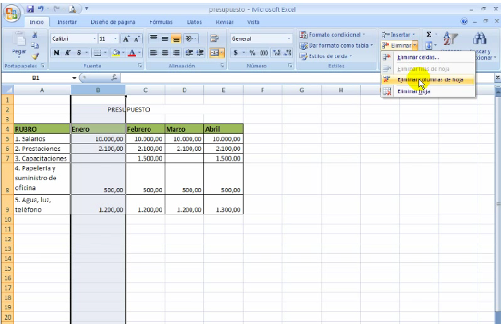 Para borrar las columnas, seguimos el mismo procedimiento en cualquiera de las dos formas.