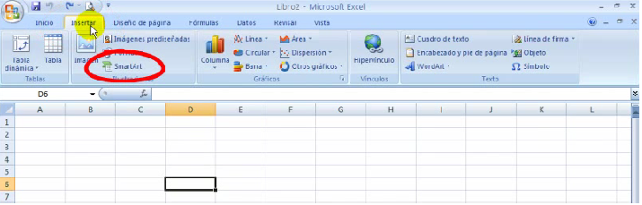 1.Nos ubicamos en la pestaña Insertar de la barra de herramientas , dentro del bloque de ilustraciones buscamos el icono de SmartArt.