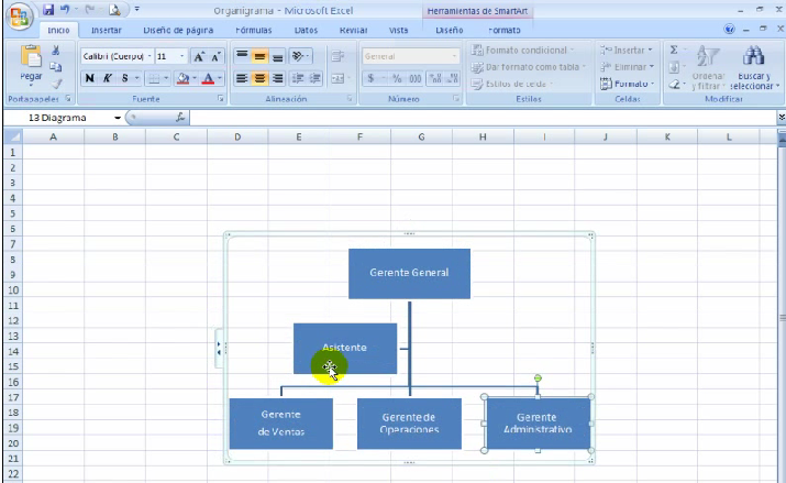 Ya una vez seleccionado, se habrá creado en la hoja de trabajo el tipo de organigrama que hemos escogido.